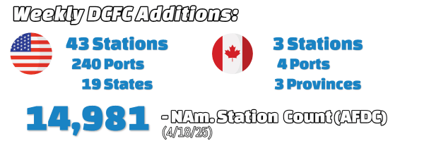 News - Another quiet week for Canada as far as Alternative Fuels Data Center (AFDC) additions go, but the US continues solid progress with iONNA and Rivian adding to their public stall counts in multiple states.
