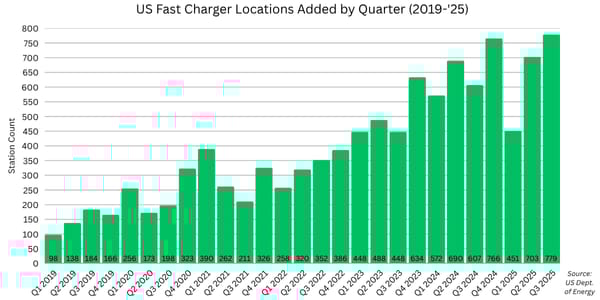 News - Between the acceleration of Tesla building out Superchargers and new players staking their claim across the market, DCFC expansion in the United States is booming and set a record quarter for new station additions in Q3 2025.