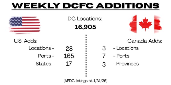 Next Up - Despite adverse conditions and the usual New Year lull, 2026 is off to a relatively positive start with more than 1,000 DCFC ports at 175 US locations. Matching this in February and March would keep pace with 2025’s Q1 addition, but there are projects waiting in the wings that promise to juice these numbers towards another record-setting year. IONNA and Walmart Energy alone have enough sites in permitting to deliver several thousand ports. Toss in Tesla’s Supercharger for Business program, rising regional players, and a more productive NEVI program, and it’s easy to see a path to more than 20,000 new ports added in 2026.