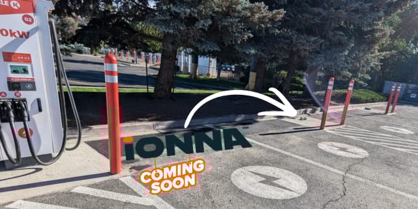 🚧 Sticking with both IONNA and Washington, fellow EV nerd AC sends word of construction progressing well at the upcoming Everett Rechargery (pictured above). We’ll have to start using addresses here, as the network already has an Everett location further north on Broadway, with this next one coming to Evergreen Walk. A coffee shop and Mexican restaurant are nearby, which will hopefully benefit EV drivers rather than have them competing for parking spaces with patrons.