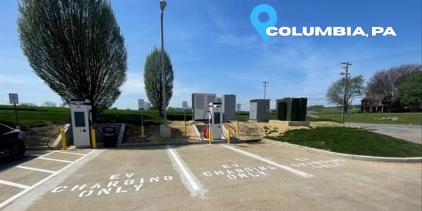 Pennsylvania’s latest NEVI site at Sheetz (with EA) awaits a transformer | Credit: Tim R.